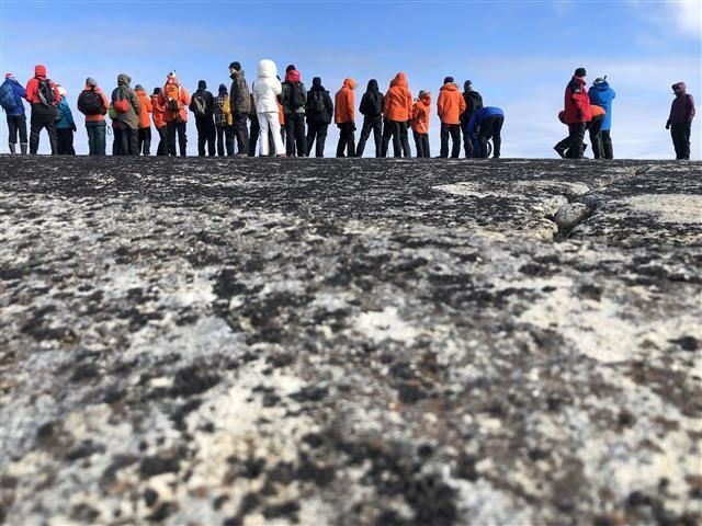 Early this morning we had a dry landing on a dock and we started our early walk on a wooden boardwalk that was built years ago by the national park system in order to prevent erosion. We gradually went up the volcano and at different spots we could see how the landscape changed. On the volcanic ash, we saw endemic and pioneer plants that were starting to colonize the island. Nonetheless, the best sight was at the upper part of the island where we could see the lunar landscape formed by spatter cones, the young lava flow from Santiago that engulfed a few cinder cones, and of course, the best sight was from the top, the most emblematic scene of the Galapagos, Pinnacle Rock.