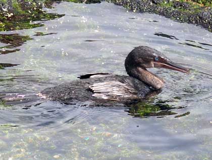 In the afternoon National Geographic Islander took us to the Terracotta Island “Rabida.” This place is also known as Jervis Island, named in honor of the 18th century British admiral John Jervis. This bizarre place has a red sand beach and a saltwater lagoon inhabited by waders and bachelor sea lions. The landscape is studded with small volcanic features along sharp slopes and cliffs. The first outing on this island was snorkeling. The rich water here made the underwater realm unforgettable. First, a juvenile Galapagos penguin was found perched on the rocks and later, playful Galapagos sea lions made our afternoon natural quest memorable. White-tipped reef sharks, sea turtles, and the only sea-going lizard in the world (the marine iguana) were spotted by our guests that were delighted with the biodiversity that characterize Rabida Island.