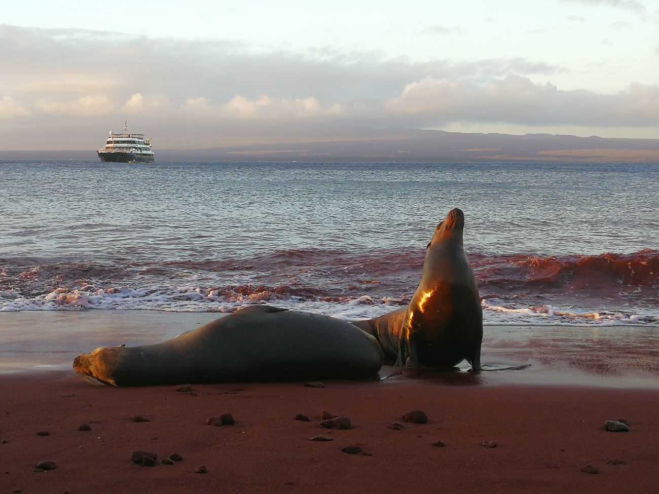As we were done with the water activities, we returned aboard and later on had a wet landing on the red beach of Rábida. At this location, we encountered several Galapagos sea lions and got to see the always-inquisitive Galapagos mockingbird checking our shoes up close and personal.