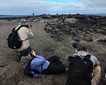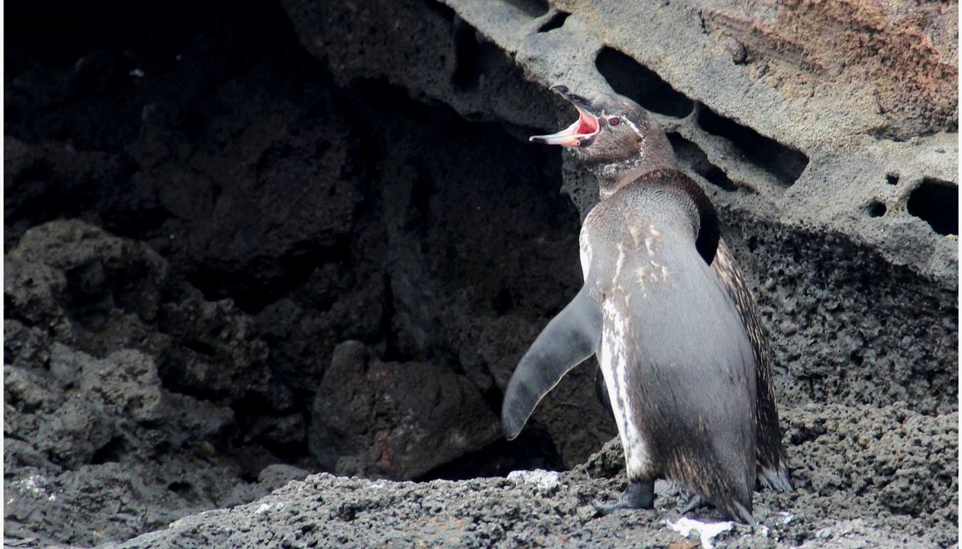 Our first outing on the second day of our expedition was to Bartolome. The hike in the early morning prepared all of us for snorkeling from the beach. The most experienced swimmers went around the pinnacle rock looking for wildlife while the beginners took to exploring along the shore. As the first couple entered the water, two penguins came by and started surfing the small waves right on the shore to catch their breakfast of sardines.