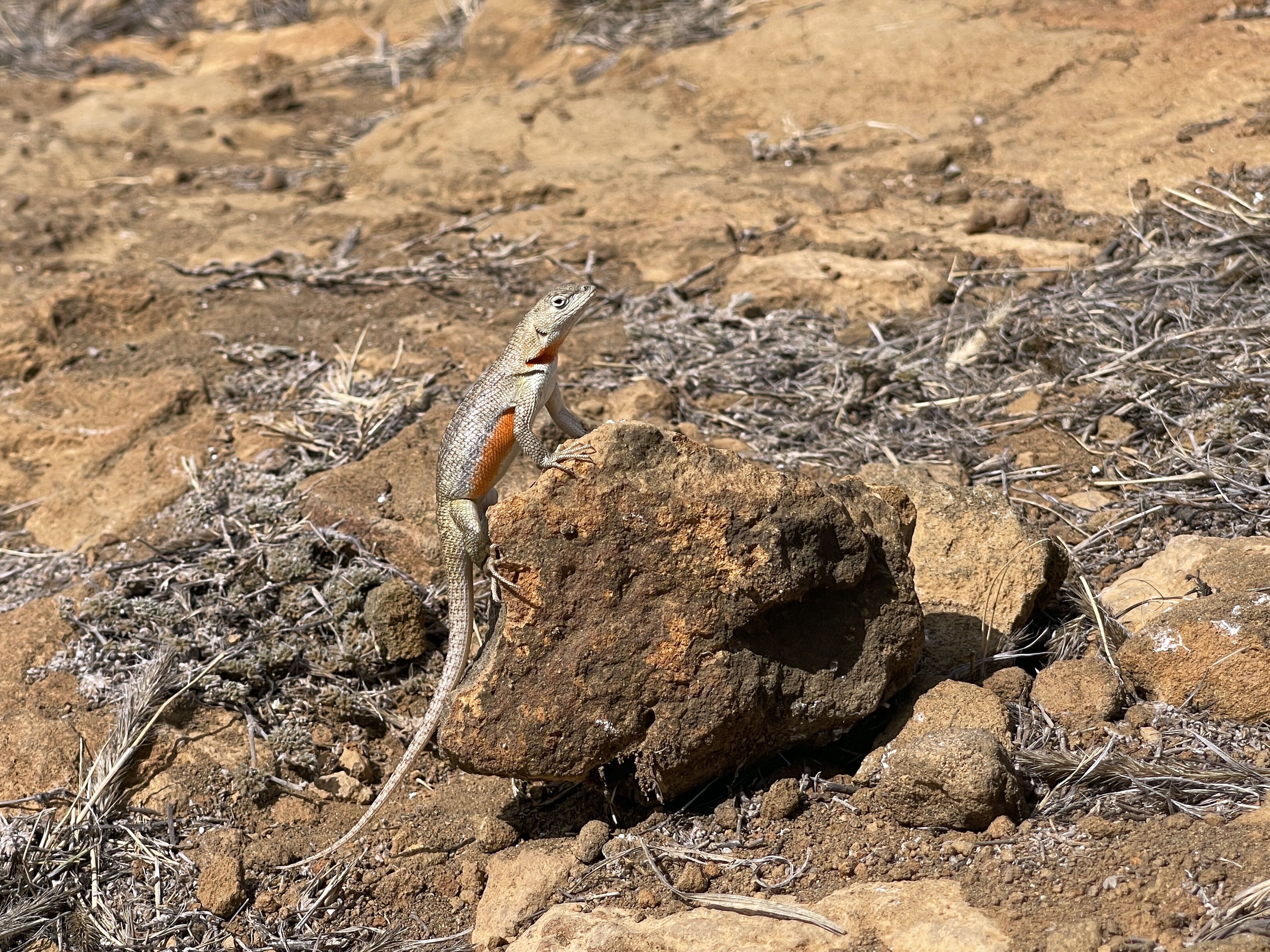 For our afternoon adventure, we sailed to the next island. We disembarked on the northern side of Santa Cruz Island. We walked along the beach and had our first encounter with marine iguanas. The iguanas were sunbathing on the beach before going into the sea for algae to eat. As we moved farther inland, we arrived at Dragon Hill. We found many Galapagos land iguanas as we walked around the hill. Some of them posed for us to take pictures, and some were more difficult to spot. They blend in perfectly with the vegetation that surrounds them.