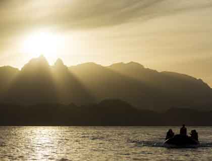 At noon, we began navigating away from Bartolome Island, and heading off to Santiago island. During our positioning, the remnant ash cones forming the Bambridge islets were the main attraction, and we were excited for the opportunity to spot some great pink flamingoes, which hold a small population here. Our guests were out on the external decks, keeping their binoculars ready to see them.