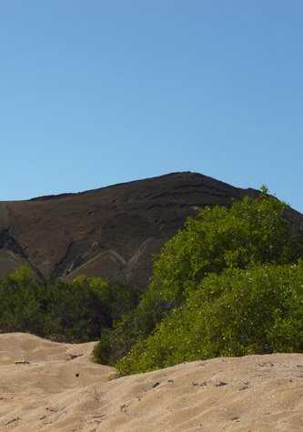 Exploring the underwater world of Bartholomew where the waters around Pinnacle Rock are full of interesting life and the water temperature had decreased, we found plenty of life as cooler waters has more productivity. Galápagos sea lions, Galápagos penguins, and sharks were spotted as well as a wide variety of tropical fish.  The golden beach north of Bartholomew, a beautiful place, is made out a semi-precious stone named olivine.