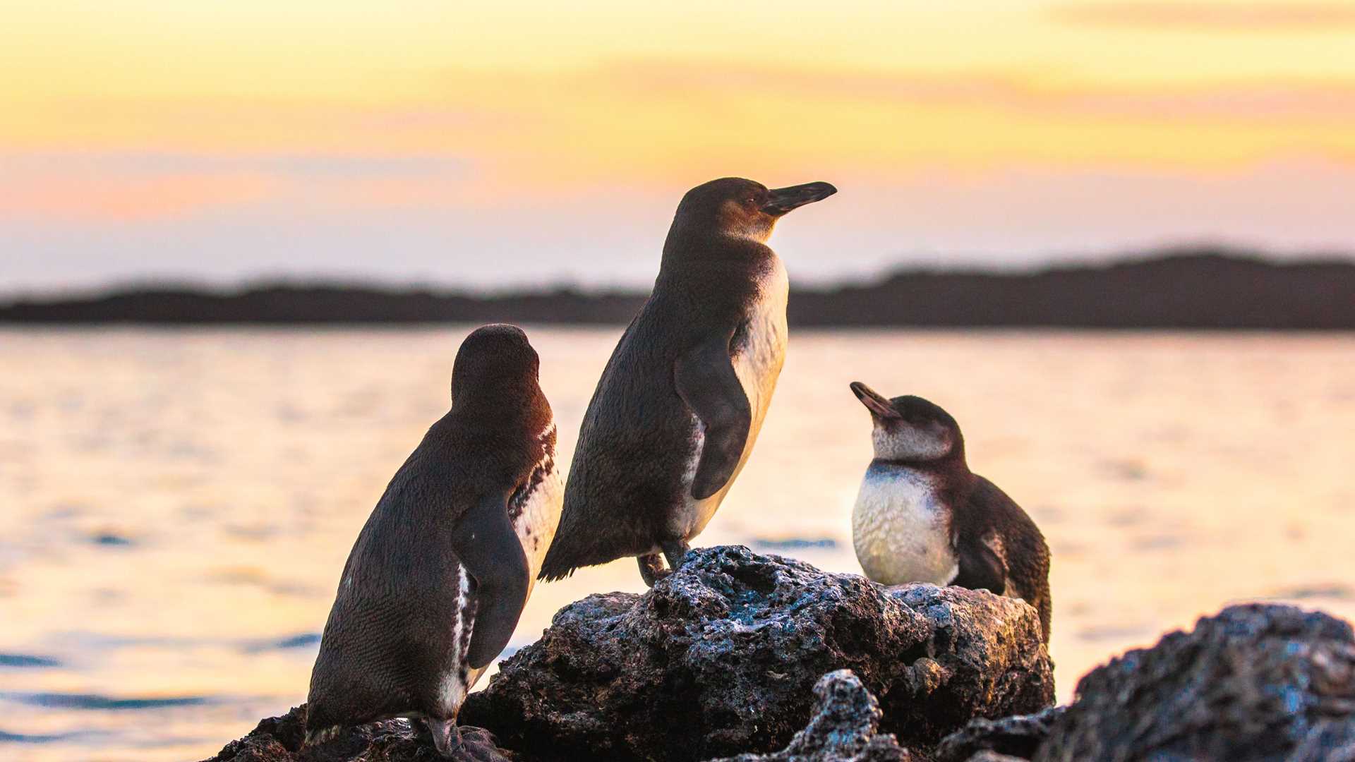 In the afternoon, we explored another island called Sombrero Chino near Santiago Island. We snorkeled in the channel that separates the island from Santiago’s lava fields. The sea is shallow with an amazing circulation, so the spot offers the best conditions for amazing marine life. We boarded Zodiacs in the late afternoon to explore the shore and search for wildlife. We encountered a colony of Galapagos sea lions and some Galapagos penguins perched on the basaltic lava rocks, ready to spend the night in small caves.