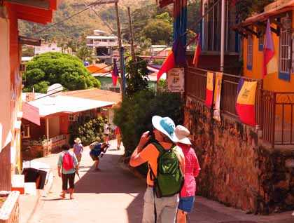 The morning outing was an extra bonus offered only when our Panamanian hotel manager Erasmo is on board. Taboga Island or “the flower island” has been his vacation home since childhood, so he kindly invited all 61 guests to walk through this little town and into his house for fresh-squeezed passion fruit drinks. The island is accessible by ferry from Panama City and is a well-known weekend destination for the locals. It was a pretty nice cultural visit, seeing the church, the narrow little roads, and the colorful houses. The famous painter Paul Gaugin made his home here for a while. After walking through this friendly town, we went back on board and off towards our Panama Canal appointment at Flamenco Signal.