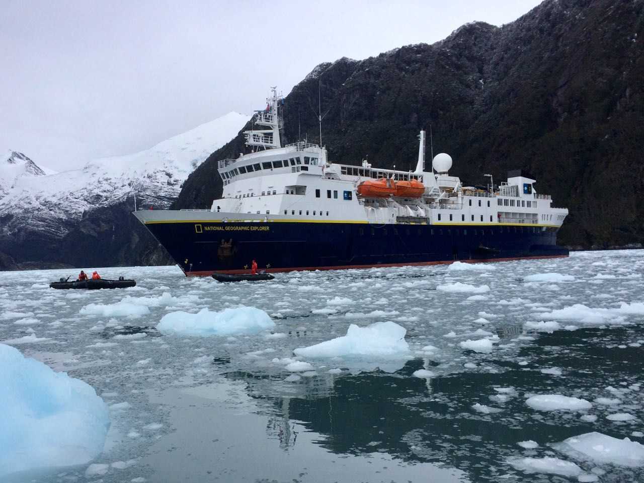 This morning we woke up in a beautiful fjord, one of many in the Cordillera Darwin on the north side of Beagle Channel. The sky was mostly overcast, which is pretty typical in this area, but with sprinkling and a fresh powering of snow on the mountains. At the end of the fjord, Seno Garibaldi, there was the spectacular Garibaldi Glacier with the fjord completely full of icy bits, like a giant margarita!  This is a very active tidewater glacier with a snout in the water feeling the tide.
