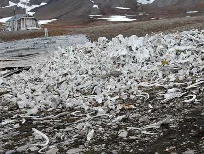 We smoothly crept into Bellsund Fjord as the last full day of our journey began. The overcast sky, broken by light areas of cloud and shafts of sunlight offered promise of another wonderful day. National Geographic Explorer’s anchor was lowered, close to our first landing at Ahlstrandhalvoya on the south shore, just inside the entrance to the fjord. An unusually cold wind was blowing from the west, as we left the warmth of the ship to make a landing at the cabin named Bamsebu. Long, medium and short walks were an offer on the large, stony, tundra plain behind the cabin. Grey phalaropes and purple sandpipers were busy feeding at the water’s edge as we made our landing from the Zodiacs. Besides the well-maintained cabin were the signs of a brutal industry past. Hundreds of beluga whales had been slaughtered here many years ago and piled in heaps were their bleached white bones.