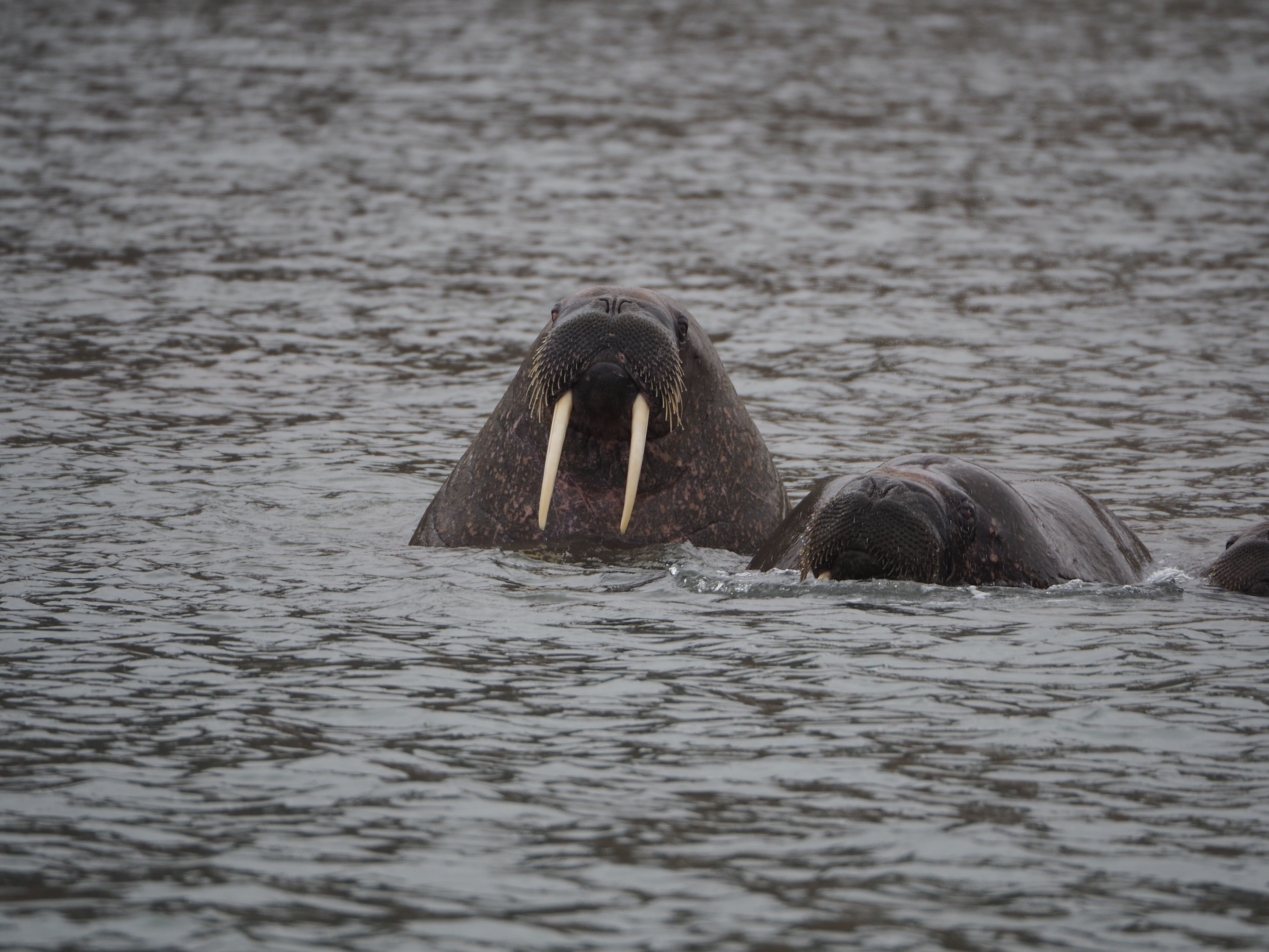 Unlike yesterday, this morning, we did not wake up to the loud sounds of crushing ice, even though we did pass some sea ice during morning hours in Freemanssundet. We started off our day with a lovely lecture on glaciers from Ezra, one of our naturalists. Suddenly, we received an announcement from the expedition leader, Stefano, that a haul-out of almost 200 walruses had been spotted. Swiftly, all of the Zodiacs were lowered, and we enjoyed a delightful short Zodiac exploration around Kapp Lee. Opposed to yesterday’s exploration between ice floes, where we, with one exception, only saw females, we were only able to spot male walruses on land and in the surrounding water. Some of them were quite curious, and we were able to admire their large size and spectacular tusks. It is incredible that animals of that size sustain themselves by only eating small mussels and remain so incredibly elegant while swimming! After eating wonderful Swedish meatballs and taking an afternoon nap, we headed back out. It was time for our first longer hike in the Arctic wilderness! And what an afternoon it was! We landed on a beach that was pink with flowering purple saxifrages. Yet, howling wind reminded us that we are indeed still in the harsh Arctic. But the wind accompanied by occasional snow and rainfall did not disturb our exploration. Looking at the remains of old fox traps, one can’t help but wonder how people that landed here centuries ago must have felt when facing this barren landscape when they first arrived. In the surrounding ponds we saw lots of birds - red phalaropes, whose females are the showy and colourful ones, majestic-looking king eiders, and long-tailed ducks. In the distance, we spotted cute and curious Svalbard reindeers. They seemed to have decided to lie down to avoid this windy weather to the best of their abilities, and curling up on the ground made them look like fluffy piles of snow. During the rest of our hike, we enjoyed the vast openness of the Arctic tundra and the feeling of being just a small human amongst this majestic landscape. After a slightly bumpy Zodiac ride, we were back in the warmth and comfort of the ship. The evening ended with an interesting recap, a delicious dinner, and a well-deserved break, after which