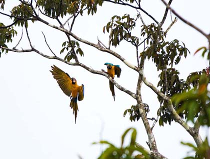 At 6:00 a.m. we boarded the skiffs to explore the shore of the Ucayali River. This area is a vibrant forest that combines different types of trees and a diversity of palms. Among all these living forms we do have many dead trees and dead palms. It is this particular group of dead trees that lure large flocks of birds, especially parrots and wood peckers. Here in the jungle a dead tree is not a lost one, it is rather an opportunity for nesting and also for finding food such as wood insects.