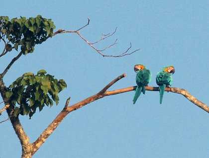 Sure enough, our early outing paid off! Several couples of blue and yellow macaws were spotted perching on the branches and even flying around, which gave us full views of their extraordinary colors.