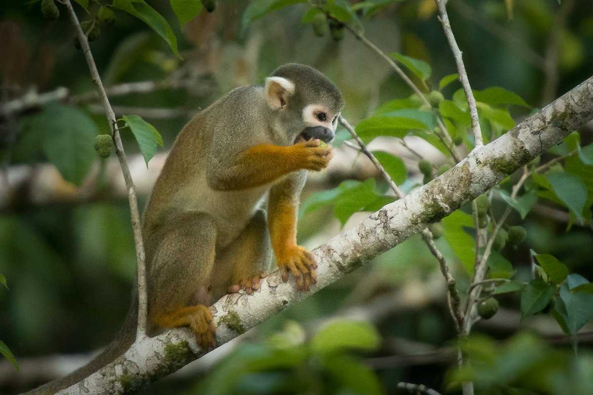 As usual, following the successful morning outing, we returned to our very comfortable base, the Delfin II, to eat and rest a little before exploring again later in the day. The afternoon was full of some spectacular sightings of several species of parrots and macaws, as well as monk-saki monkeys, spectacled caimans, and pink and gray river dolphins.