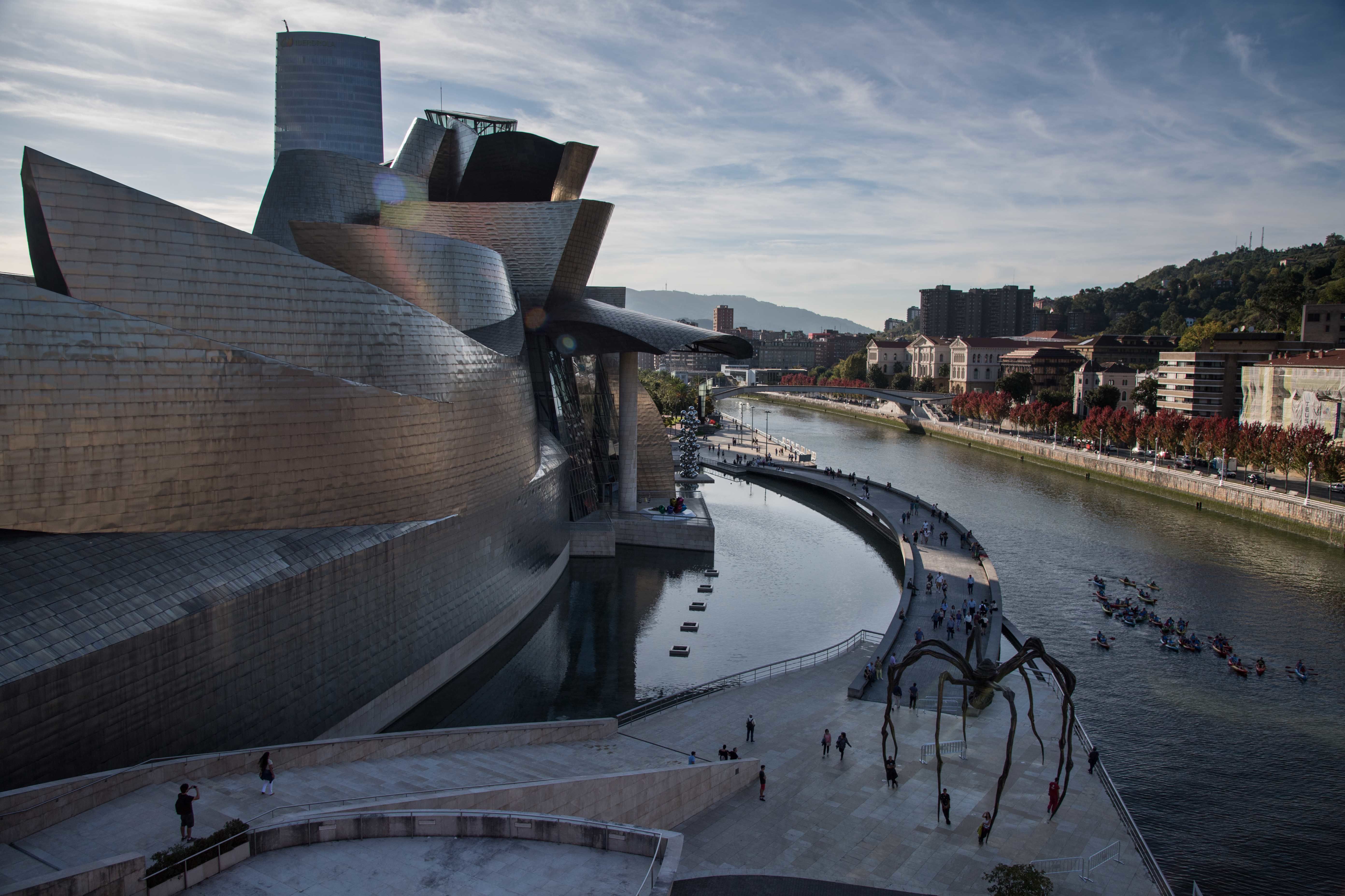 Frank Gehry’s Guggenheim Museum in Bilbao is one of the most iconic structures of modern architecture, and arguably the last great museum of the twentieth century. Its jumble of fish-scale titanium-plated surfaces, the first such structure to be built using computer modelling, is compelling viewed from any angle and succeeds, in spite of its modernity, in harmonizing both with the surrounding architecture of the city – it incorporates the Puente de La Salve river bridge into its design – but also with its recent industrial tradition. For by having the vision and the confidence to risk investing in this building, what was a failing, depressed de-industrializing community sitting amidst the ruins of an outmoded iron and ship-building industry has transformed itself into a premier tourist destination, with more Michelin-starred restaurants than any other city of comparable size and a list of iconic buildings built by celebrated international architects keen to follow in Frank Gehry’s wake. Today the city is vibrant and self-confident, its ancient Basque language in widespread public use and with a majority of its schoolchildren following their entire curriculum in the language, a language not permitted in the public sphere as recently as the 1970s under the Franco régime.