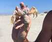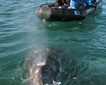 Today was the last day of gray whale watching. Guests and naturalists boarded expedition landing craft very early in the morning, and we soon discovered up to 14 cow and calf pairs at Boca de la Soledad, the northern entrance to the Magdalena coastal lagoon. Several individuals were just swimming and diving around the boats; some breeched, spy-hopped, and even lifted their heads. But later some approached us and we were able to reach out and touch them! As the morning progressed and the tide came up, it was time for us to make it back to the boat, and for the whales, time to continue their daily exercise and nursing of the babies. All of us said goodbye to these gentle creatures. In the afternoon we visited the Pacific side of Magdalena Island, called Santa Maria Bay, and its beautiful shore known as Sand Dollar Beach, where we found sand dunes, interesting vegetation, and an endless number of sand dollars and shells.