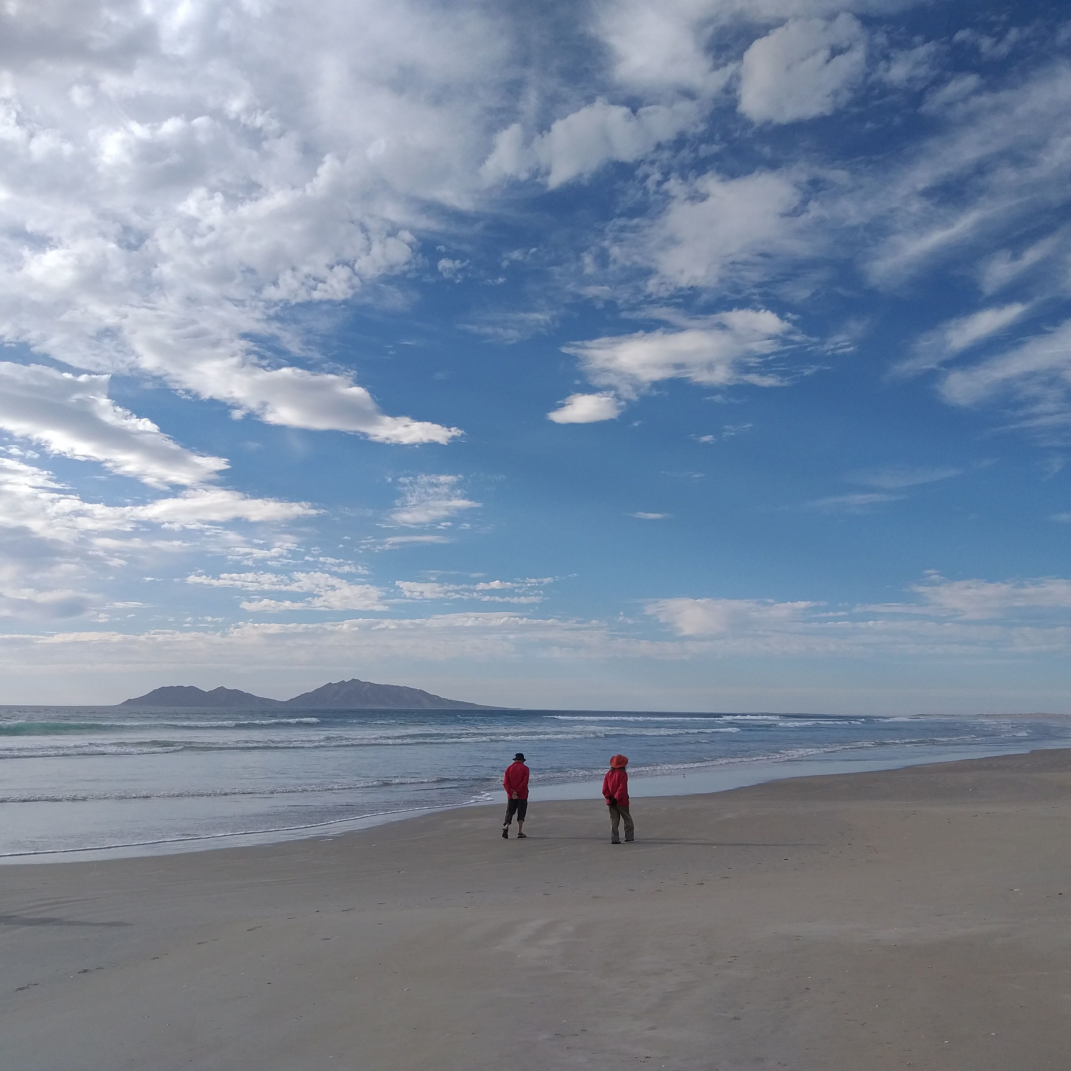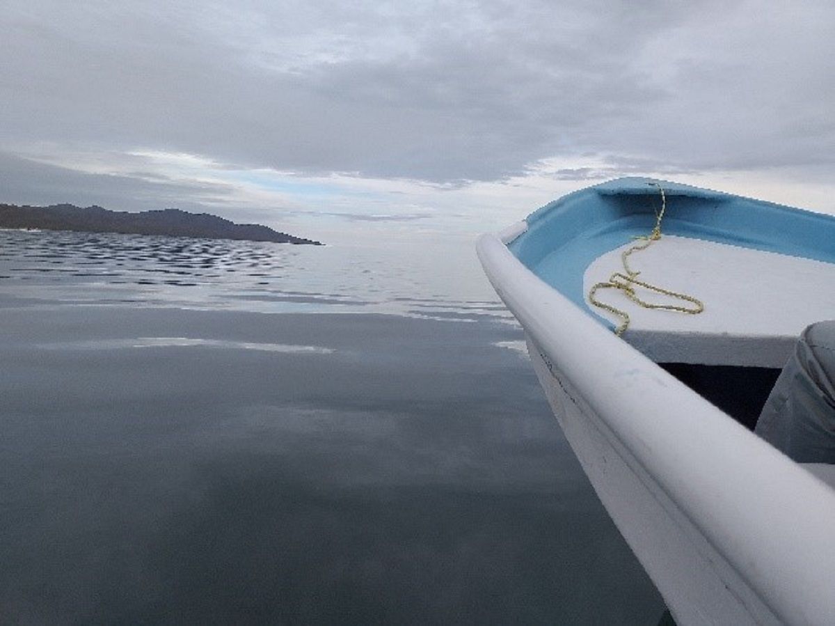 Today we repeated a session of whale watching in the quiet waters of the Magdalena Bay, but a bit earlier. Around 7 a.m. we boarded a big local panga, moving into the Boca de la Soledad, a shallow entrance for the cetaceans located between Magdalena and Santo Domingo islands. There was a light, warm breeze blowing from the northwest, but the conditions were perfect for more whale observations, like a clear atmosphere and a motionless sea. Once at the Boca, we saw the whales moving slowly, almost lazily, with no hurry—the mothers nursing the babies or playing with them; the singles seeking for mates. Our excited guests captured the last mental and photographic images of these magnificent giants, as we would leave soon the area.