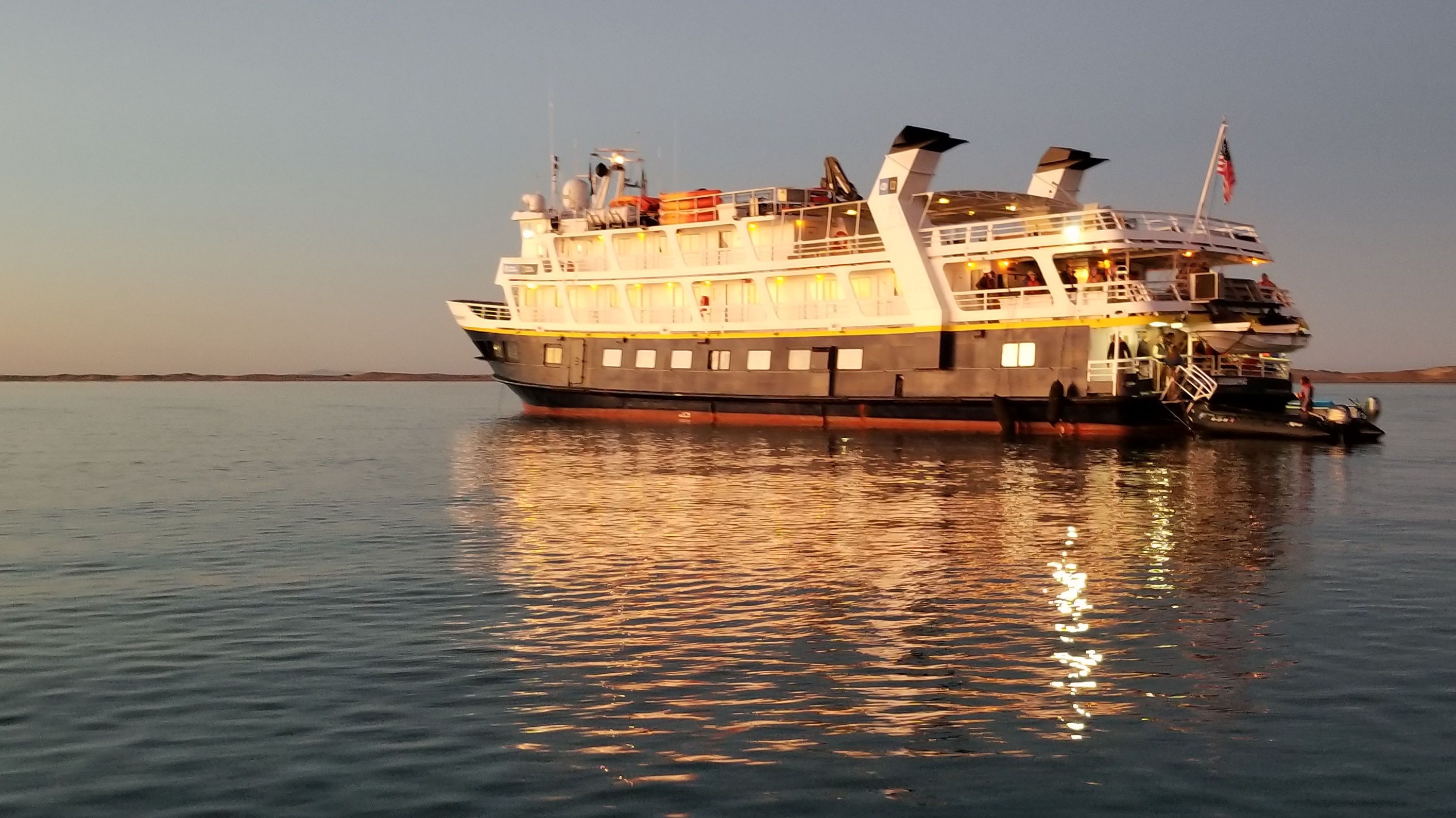 During the transit of the Canal de la Magdalena, Hiroshi Kawashima presented “The Other Mexico,” a great overview of the discovery, exploration, colonization, and modern life of the peninsula of Baja California, the gulf, and islands. Some whale sightings also occurred from the bow, and, again, we contemplated the dense patches of mangroves with their feathery inhabitants—cormorants, godwits, willets, and others, while 13 dolphins rode our bow.