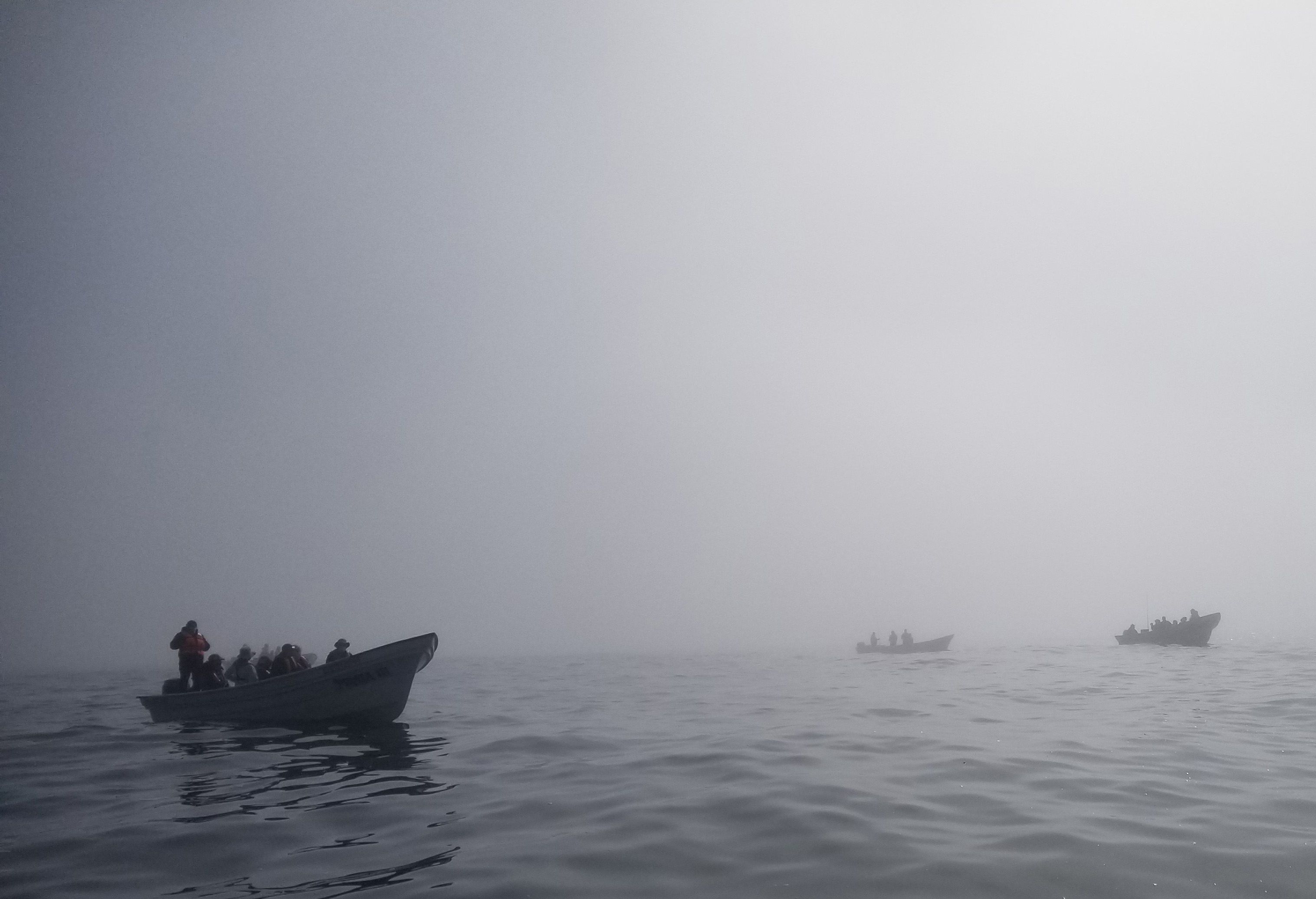 Today was the last day of the Baja California season for National Geographic Sea Bird . We had a very nice day of whale-watching. The weather was pleasant, and grey whales were getting ready for their long migration north. Some of today’s highlights were the birds we found as we headed towards Canal de Rehusa, where we encountered California grey whales. Among the birds, we observed a majestic juvenile bald eagle, apparently in its third year of age. We spotted an immature peregrine falcon just behind a myriad of pelicans, gulls, and cormorants. We can certainly see a lot when we stop to look!