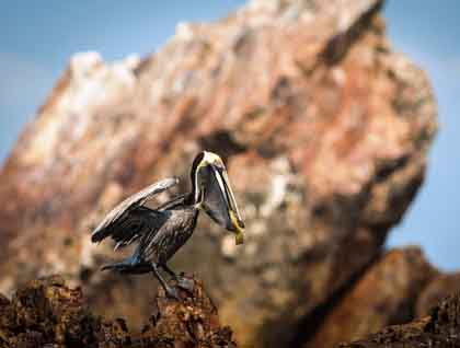 Similar as the Spaniards, National Geographic Sea Lion decided to explore the Island of Bona and Otoque. These islands today are important rockery for sea birds. We decided to cruise around them in our expedition landing crafts. We saw a diversity of sea birds, including magnificent frigatebirds, brown pelicans, white egrets, brown boobies, blue footed boobies, and neotropical cormorants. We also spotted a school of golden manta rays.
