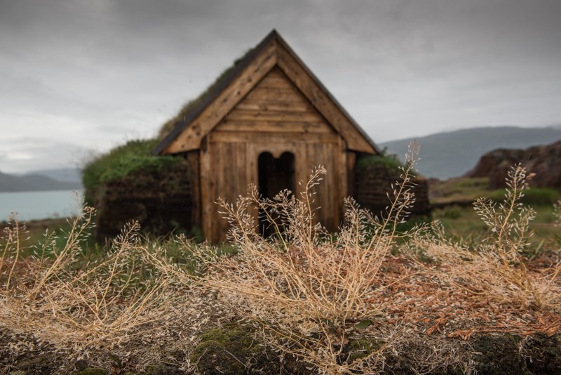 Just 50 meters away, enclosed in a low sod fence, we entered a tiny sod church. The story goes that the founder of this settlement, Eric the Red, was a lifelong follower of the Norse belief system, but it was a different story for his son, Leif. Leif went to Norway and became very interested in Christianity. When he returned to Greenland he brought some priests with him, and, according to the Sagas, Leif’s mother (Eric’s wife) became a Christian and a tiny church was built for her. Although the reconstruction is up on a hill, the ruins of the original church, called Thjodhild’s church in her honor, sit just meters away from the small modern church still used by this community.