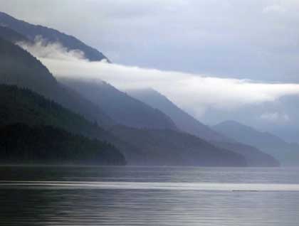 The forests draped in misty low clouds that cover the vast fjord lands of coastal British Columbia are wondrous and mesmerizing. As we cruise through narrow waterways and around innumerable islands, it is enjoyable to imagine the great cedar canoes near the edges of the land, paddles dipping into the deep green ovoid reflections. For thousands of years, the people of the Northwest coast have made long seafaring journeys to feast and to trade, to celebrate births and mourn the passing of elders. Watching from the bow of the National Geographic Sea Bird and contemplating the Great Bear Rain Forest passing by us, I am grateful for the descendants of the people of the salmon and the sea, the new generations embracing the traditions of their ancestors and bringing them into a new light.