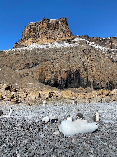 As a new dawn crested the Antarctic landscape, National Geographic Resolution continued its journey through the ice and surrounding megafauna to arrive at Brown Bluff. This iconic locale on the northern end of the peninsula features colonies of gentoo and Adelie penguins. After enjoying the morning, we set sail for the rarely visited James Ross Island, setting loose Zodiacs and kayaks. We explored the waterfalls spilling off the cliffside and the seemingly infinite ice sculptures.