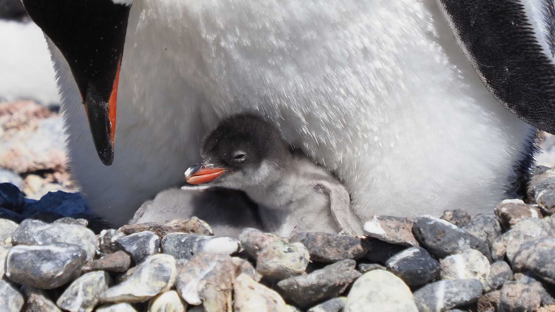 I love it when a plan comes together! We started our morning off in the sunshine at Brown Bluff with another incredible continental landing. The 2,444-ft cliffs just above the landing beach are remnants of an ancient volcano from around a million years ago. The beach and waters just offshore were teaming with wildlife. Home to both Adelie and Gentoo penguin colonies, the beaches can be quite busy with streams of marching penguins, and we even spotted several nests with newly hatched chicks.