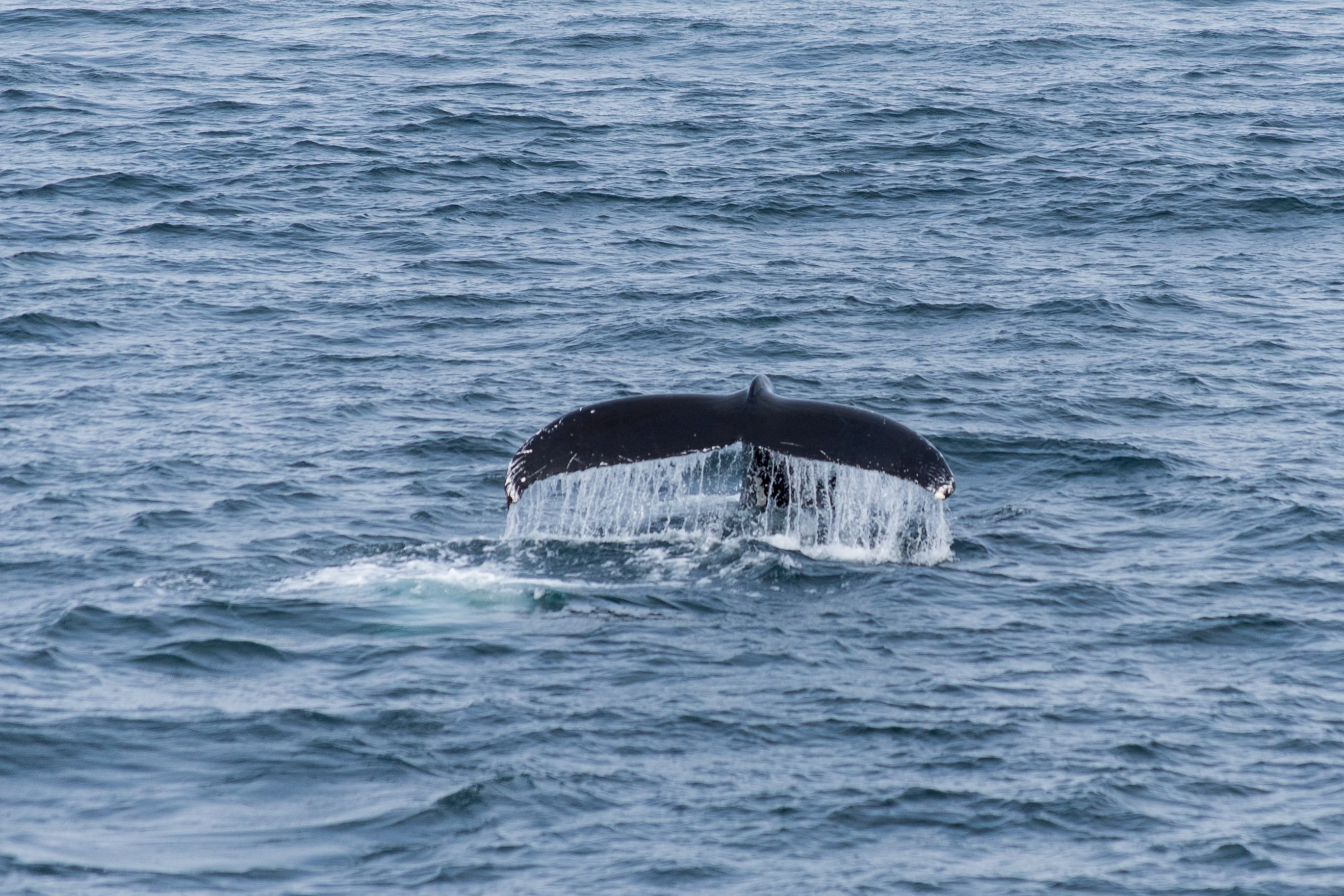 During lunch we left the Hornsund fjord systems and headed to the edge of the continental shelf or the “drop off” where we spent the rest of the afternoon sailing as we searched the open waters for whales. We came across a small humpback whale off the bow of the ship, which breached a few times and gave us some beautiful shots of its fluke as is repeatedly surfaced and dove. Saying goodbye to the humpback we spotted large spouts far out on the horizon, and we headed in their direction hoping for some larger whales. The distant spouts belonged to half a dozen fin whales, the second largest whale. Soon it was time to leave the whales and the drop off behind and continue to sail north towards our final destination, Longyearbyen. We spent our last evening aboard enjoying some spectacular images from the trip in the guest slideshow during the captain’s farewell party.
