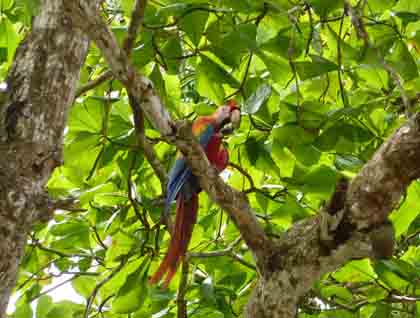 Right after breakfast we disembarked to Caletas Beach and Reserve. A good amount of guests joined naturalist Cristian in a horseback riding expedition following the shoreline to the river mouth of Rio Claro. The discovery of Osa peninsula whether on horses or hiking would always have the surprise factor in it. During my walk, after an hour in search of the scarlet macaws, I was talking about the beach almond (Terminalia catappa) the main source of food for this species; in a blink of an eye, there! Two pairs of scarlet macaws landed right in front of us. Unbelievable! I cannot count all the images our guests, including me, tried to shoot of the exhilarating colors of these birds. By the end of the morning most of us returned for lunch with big smiles on our faces.