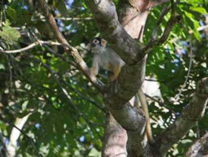 For the afternoon, we took to the skiffs and kayaks to enjoy the varzea forest. The blackwater stream we explored seemed like we were gliding across a mirror, with perfect reflections on all sides. Squirrel monkeys were common and curious, and the birds extra colorful. From the red of a tanager to the blue of a cotinga, the vibrant hues were certainly shining on a perfectly sunny afternoon. And as the sun got lower, the chorus of the forest increased, and added immensely to our experience.