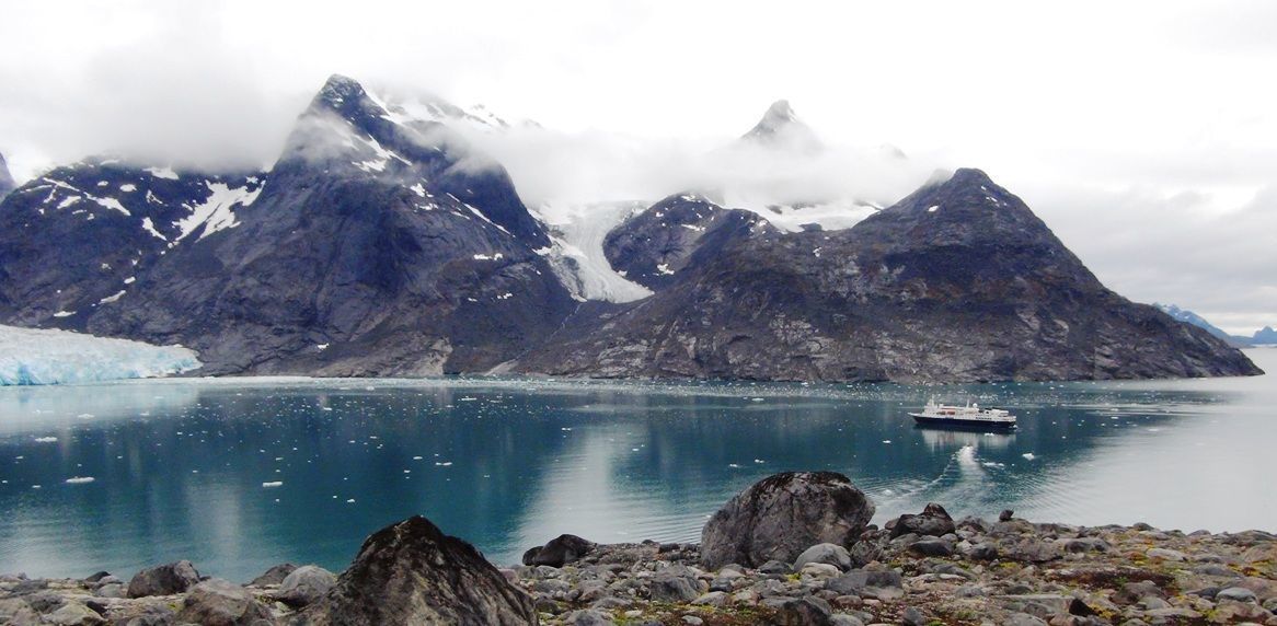 This morning National Geographic Explorer is sailing in thick fog in Lancaster Sound. Fog is very common in high latitudes, especially in fair weather when there is little wind, when warmer air encounters cold Arctic water. The fog begins to clear as we approach land. As the ship anchors along the northern coast of Bylot Island the bird cliffs of Cape Hay are revealed. Bylot Island is a Migratory Bird Sanctuary within Sirmilik National Park in Nunavut.
