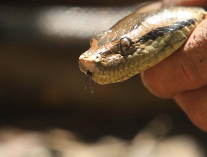 Right after breakfast we went for a hike in the vicinity of the San Jose community in an area known as Casual. With rubber boots on our feet and with the company of three local native scouts from the community we explored a well-maintained “terra firme” rain forest trail. This outing served, with the help of the interpretation of our naturalists, as an introduction to fascinating dynamics of the tropical rain forests. We observed several frog and lizard species that our native scouts spotted. We saw a pink-toed tarantula as well. The icing of the cake was the unusual spotting of a juvenile anaconda. After these activities we had a couple of introductory talks, one on the Amazon region and one on the Pacaya-Samiria Reserve.