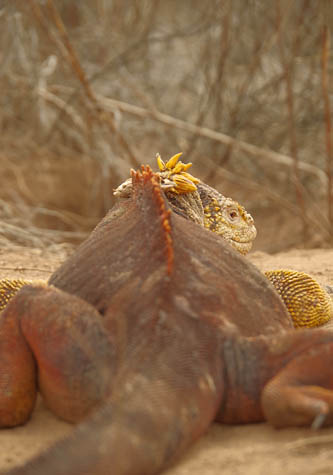 Contrast, aperture, light, and storytelling are descriptions for various aspects of photography, however they also are fundamental metaphors for life. This morning in Galapagos, we started our day in each of our individual ways (as we are animals of habit) at Cerro Dragon on Santa Cruz Island. I feel that discovery and exploration have become an integral part of this floating community that has coalesced together, here in the enchanted islands, over the past days. What a contrast of environments, as we head inland with opuntia trees refracting the morning light through their spines, as lush green coastal vegetation lifts us from the coast as we pass a brackish pond. Grey clouds change positions in the sky as we come upon greater flamingos searching for food in the silt of the pond. Transformation of the crustaceans they feed upon into the color we see is an awakening of our senses. As we head inland, we pass the salt resistant green and red vegetation, and we encounter clay like soil that expresses the iron oxide from this volcanically created island. The drastically open aperture states that we are in a rain shadow, and inland is an opera of greys and matted colors. Upon closer inspection, we find the occasional Galapagos bitter bush that tries to burst forward with miniscule dots of color. The occasionally land iguana lumbers about, with an apparent destination but with no schedule. The iguana representing Helios as it moves from east to west on its path, taking the warmth of the sun with it. Palo Santo incense trees with their lichen covered trunks make a connection with the clouds. As we reach the apex of the cerro, we are greeted by a Galapagos flycatcher and its endless search for energy as it continues its lyrical flight. Our altitude gives us a short sense of accomplishment and a wonderful view of the isolated land in the distance. As we continue in our return, we encounter the light of the day trying to illuminate all, although it is muted by the weather of the day. Islands of life are encountered in tidal pools as we return to our landing site. A world in a droplet starts to make sense, as we become empathetic to the incredible struggle for life at every turn. Education and exploration doesn’t cease as we return onboard the National Geographic Endeavour, then head out to the deep blue that surrounds us. Entering the aquatic realm confirms our suspicions, all is connected as a sea lion pup blows bubbles at us and reef fish start to clean us, as if it we should have done this long ago. A story acts as a way to paint a picture, and storytelling is our picture of life. May it continue to express itself.
