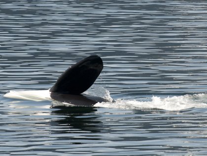 We began our day in Chatham Strait. The weather was splendid, with bright clear skies and glassy water. We intended to land on Chichagof Island but our plans were interrupted by killer whales. The whales appeared at breakfast and we spent most of the morning with them. We traveled with a “resident” pod. By their numbers, behavior and morphology it was clear that these were the easy-going and surface-active king salmon eaters.