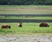 Our afternoon destination was Takatz Bay, a dramatic region surrounded by soaring mountains with a salmon stream emptying through the meadow into a tidal flat, where we found more bears. A sow with three cubs came into the meadow, followed by a young male. The young male must have been quite hungry as he proceeded to consume meadow grasses for half an hour to our great pleasure. Hikers had the opportunity to walk alongside perennial bear tracks found in the muskeg. My, oh my, what a wonderful first day!