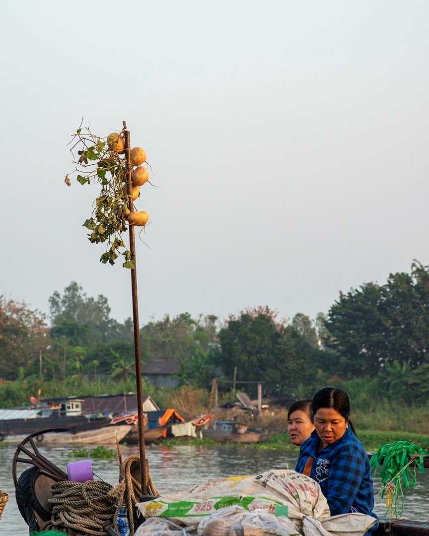 On Jahan, we spend our first day exploring in Vietnam. We set off early at 6:30 a.m. for our first excursion to explore the town of Chau Doc by long boat. Our first stop was the floating markets then we went ashore to see the town. We started with a local transport ride of bicycle taxis through the city, then explored the morning market. We returned to the ship for breakfast. Our local guide, Tri, did a presentation on Life in the Mekong Delta. In the afternoon, we explored the local produce farms near My An Hung. Then, we had appetizers and drinks on shore on the My An Hung sandbank!