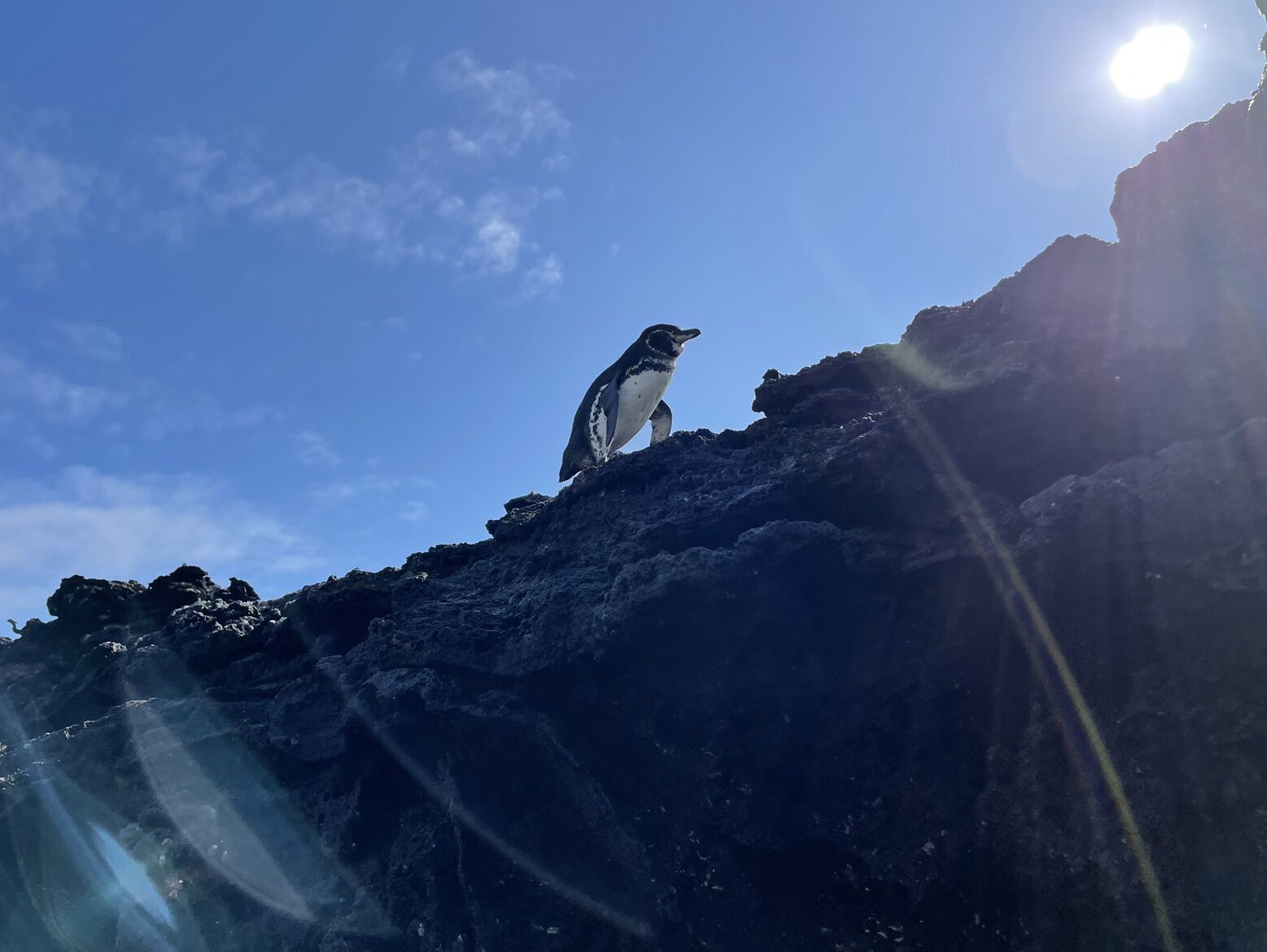 The afternoon was full of different ways to explore. Some of us went for a long walk on one of the most pristine pahoehoe lava fields in the archipelago, where the features of volcanic eruptions can be observed with the naked eye. Some guests decided to go for a more relaxed, short walk to explore the coast. We enjoyed more penguins as they perched on the lava rocks and a couple of oystercatchers finding food along the shoreline.