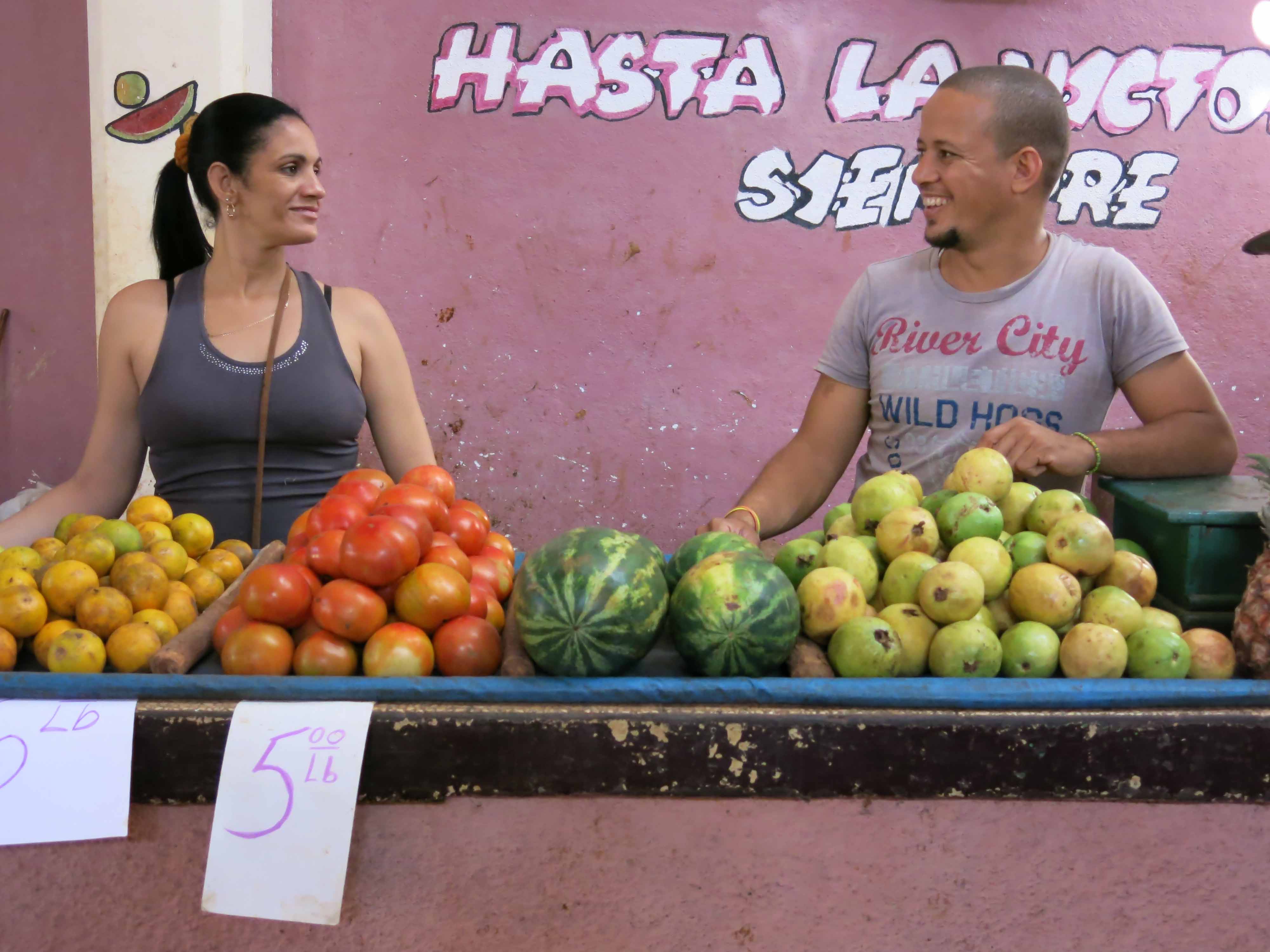 Our final day in Cuba was spent enjoying the Cienfuegos area. We began in the square enjoying the beautiful architecture and learning the history of this city of 170,000 people. From there it was a short stroll to the local farmers market, where we saw a variety of local produce on sale – pineapples, tomatoes, peppers, cassava, guava, bananas and more. The prices at the market were in the currency that the locals use – the Cuban peso. Cuba has two currencies, the convertible peso “CUCs” (that we have been spending for the last ten days) and the Cuban peso. The conversion is 1 CUC to 24 pesos, so this gave us some interesting bargaining opportunities.
