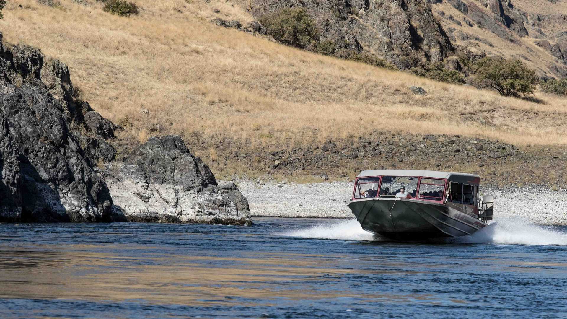 The National Geographic Sea Lion docked overnight in the town of Clarkston, Washington. The early risers amongst us were greeted by a beautiful sunrise illuminating both the Snake River and the high desert hillsides while numerous small aluminum craft were fishing for salmon and steelhead. At 8:30 the group divided and stepped onto two jet boats, which headed south into Hells Canyon, the deepest canyon in North America.  The skilled captains smoothly navigated their craft through rapids, shallows and narrow channels guiding us just over 50 miles up the Snake River.