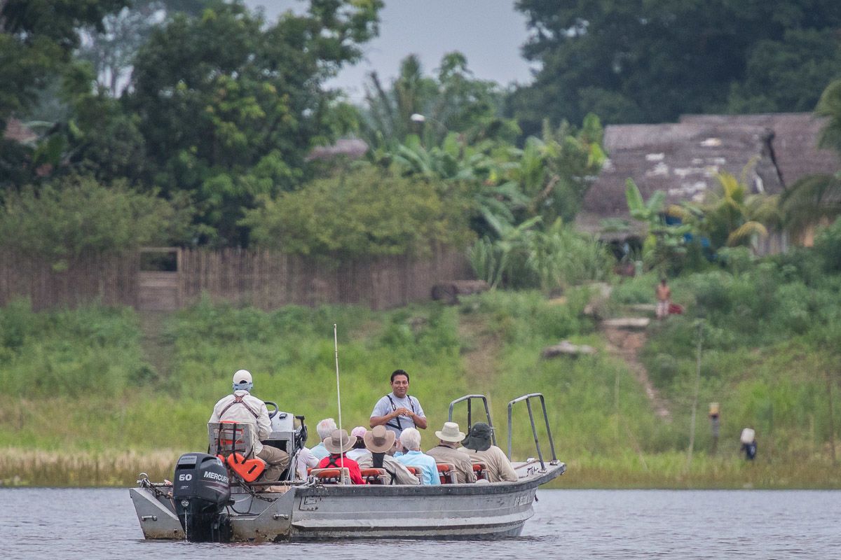 We have had an astonishing week full of the kind of unfathomable experiences that only happen once in a lifetime. Tomorrow, we will be back to another jungle built with cement and other kinds of wildlife. But this morning, we are visiting a very small community at the foot of the Amazon River. People living here are poor in possessions but rich in a very natural way of living, and you see very happy people everywhere. Our guests enjoyed interacting with locals, eating their food, and learning how they use local materials found in the jungle for agriculture, fishing, and handicrafts. Minga Peru is a non-governmental institution. The Lindblad Fund supports these communities in the Upper Amazon through education and by empowering people, especially women, to develop job skills, create jobs with better incomes, and eradicate domestic violence. In the afternoon, we went to Casual Forest. With the help of some local, expert guides, we explored the jungle. The site is home to many creatures, like tarantulas, tiny frogs, and boas. We observed many medicinal trees. This outing was a great learning experience for our guests. Once we got back on board, we enjoyed a farewell cocktail party with all the crewmembers. Our guests were very happy after a great week exploring the Amazon of Peru. Our week was very special. We found capybaras and large caimans during our nocturnal outing, and the highlight was spotting a big jaguar resting on the riverbank of the Pacaya-Samiria Reserve. To celebrate the end of our memorable journey, our talented crew performed in the dining room. They played some local music and danced. We will depart in the morning for Iquitos, where we will visit the Manatee Center and the city’s boulevard. We had a wonderful time together. We made new friends and will remember this trip forever. Cheers to Peru!