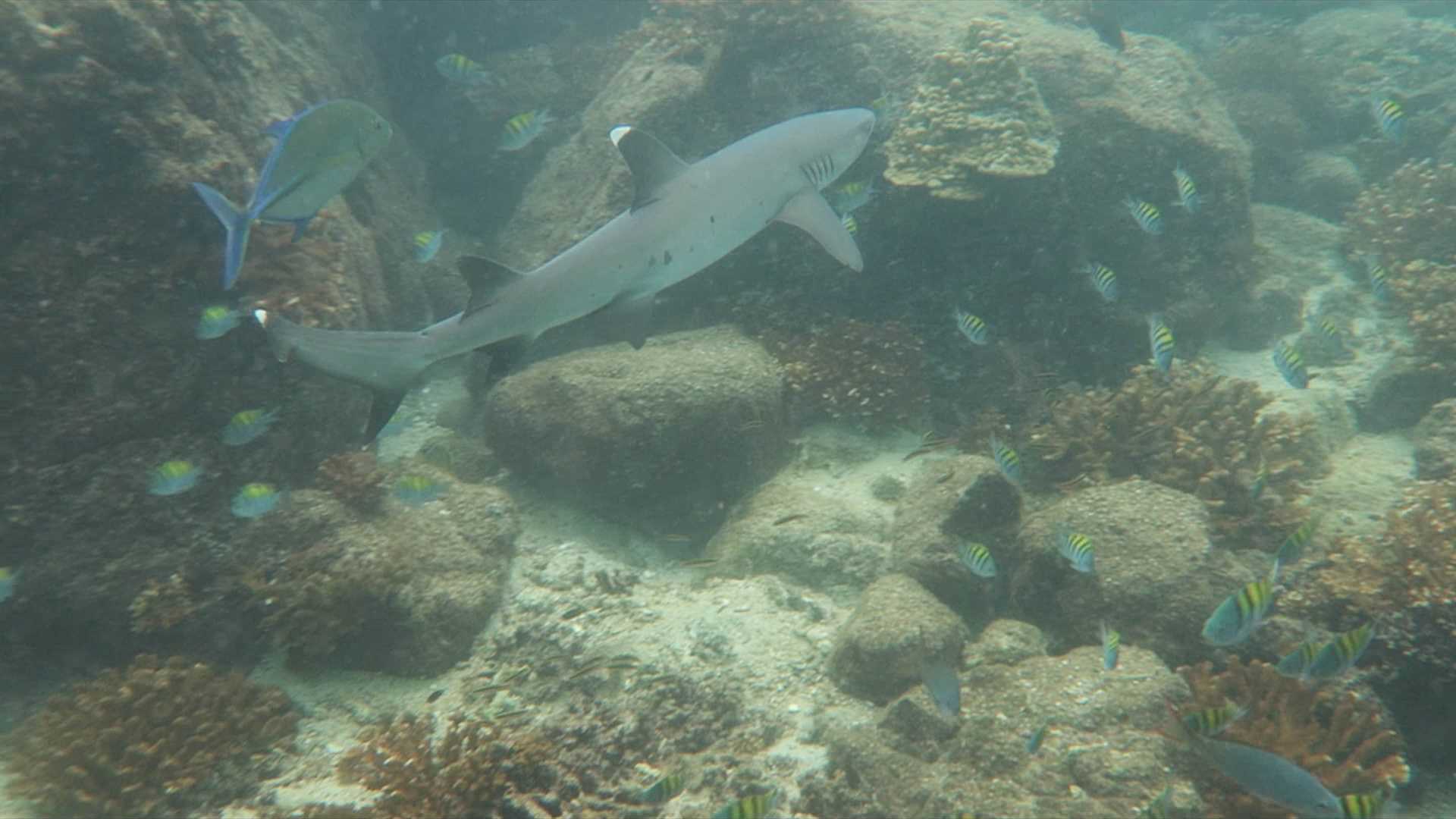 It was motivating to see a recovery in the coral reefs and the tide provided an amazing experience to our expedition. Sea turtles, king angel fish, Moorish idols, eels, rainbow wrasses, parrot fish, Guinea fowl puffer fish which is a delicacy to eat in Japan, despite the fact that it produces a toxin that could be deadly if it is not well prepared. In addittion surgeon fish, even a lobster and white tip reef sharks, among many other species were our hosts in this amazing underwater world.