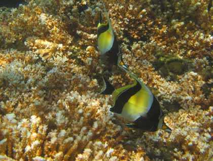 This is the best kept remaining coral reef of all of the eastern tropical Pacific, with mostly rocky and hermatipic coral formations. We found a large array of fish and invertebrates as we ventured into the undersea world. Everyone came back out of the water with great descriptions of fish, urchins, and even octopus and giant clams. The list was almost endless: bicolor parrotfish, barberfish, Moorish idol, spotted eagle ray, tiger snake eel, silversides, crocodile needlefish, Reef cornetfish, trumpetfish, snappers, grunts, chubs, angelfish, parrotfish, wrasses, and many, many more.