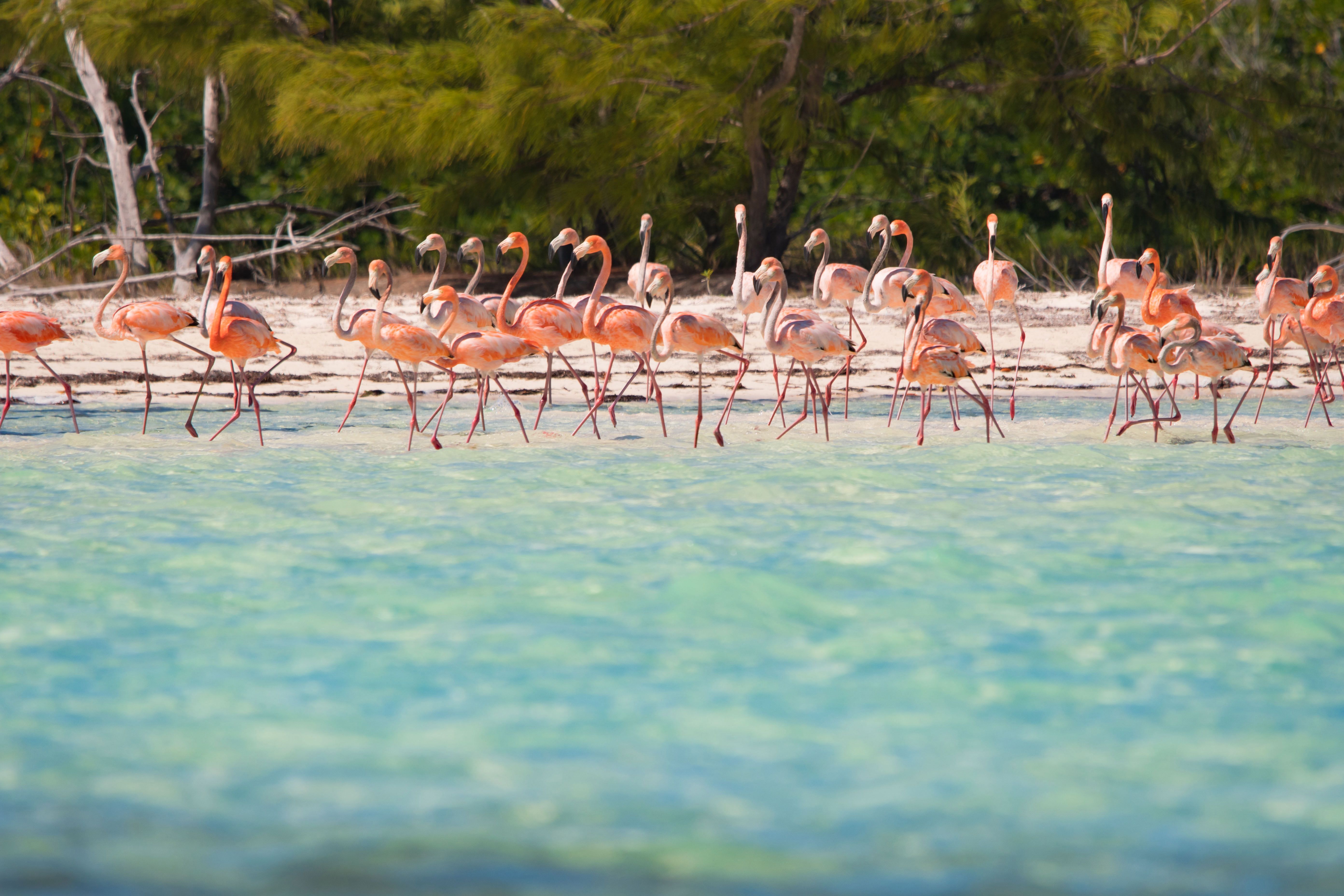 After a long, rocky crossing from Exuma to Crooked Island, we dropped our anchor off the southern coast and got ready to embark on this new adventure. For our first adventure, we set out on Zodiacs to explore Long Cay and get our first look at these beautiful islands. We were also looking for a very special bird, the West Indian flamingo. The flamingo is the national bird of the Bahamas, and they are reliably seen only on the southern islands of the Bahamas. We had pretty good knowledge and a record of a small flock that frequents the eastern side of Long Cay.