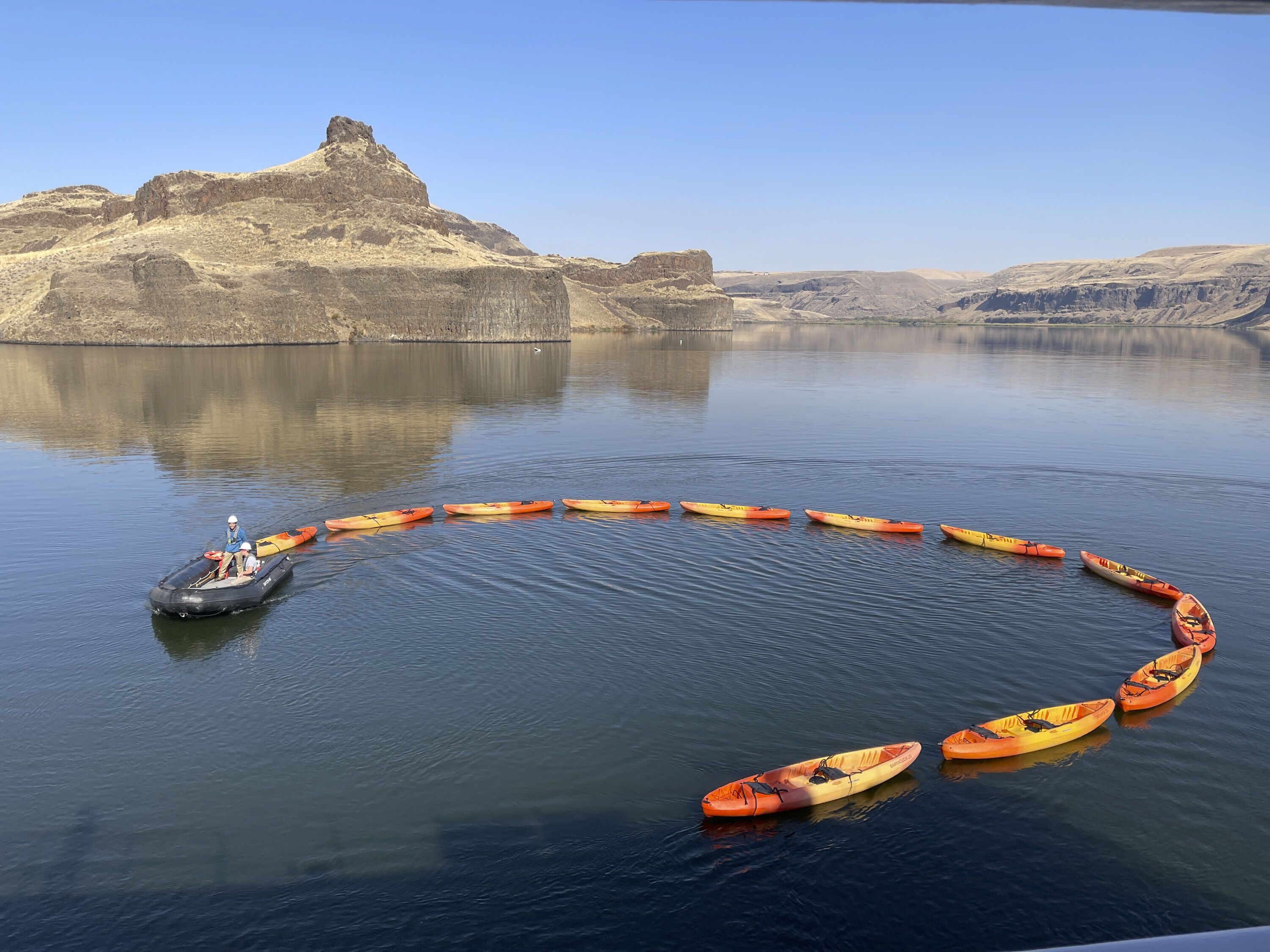 The ship anchored off Crow Butte, where guests were shuttled to shore for hiking across the sagebrush-step landscape with sweeping views of the Columbia River and National Geographic Sea Bird. Guests spotted northern harrier and red-tailed hawks among the desert landscape populated with big sagebrush and rabbitbrush. We observed evidence of mule deer, fox, and field mice along the trail. Following our morning hikes, the group was given a Food-Water-Energy Nexus talk in the park by river historian and naturalist, Patrick MacQuarrie, before returning to the ship for lunch.