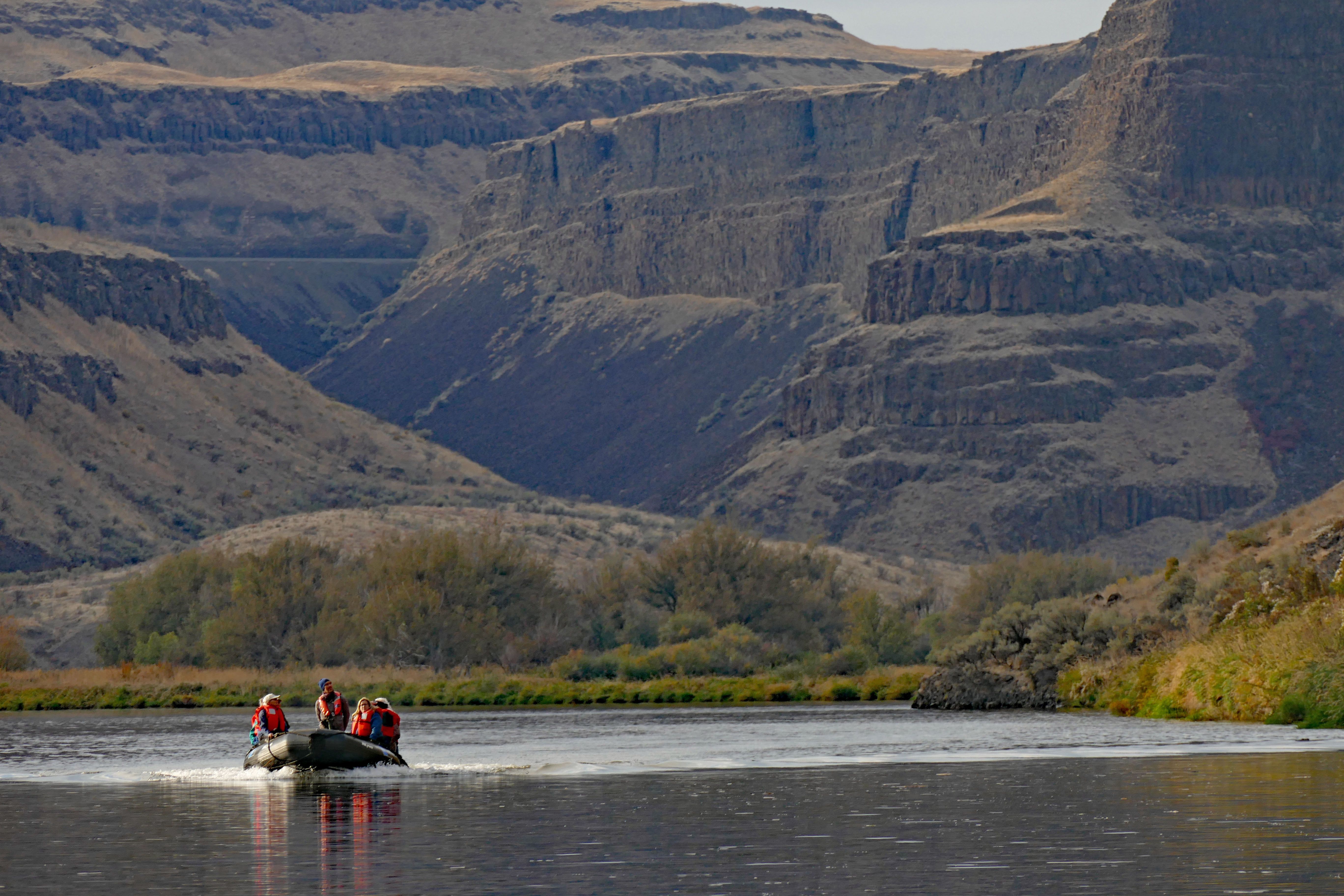 National Geographic Sea Bird climbed up the Columbia River. The ship made its way from the temperate rainforest across the deep and narrow basalt cliffs of the Columbia Gorge and into the dry sagebrush-steppe landscape of Crow Butte. The transformation took just a few hours. As the sun rose across the sharply edged riverine lines, guests sipped coffee and enjoyed breakfast. Afterwards, we enjoyed an expert talk on “Soils and Raptors” by naturalist and “Raptor Extraordinaire,” Zoey Greenberg. Emerging from Celilo Falls and the Long Narrows, we shuttled upstream to Crow Butte Island. Guests enjoyed aerobic nature walks around the island in the morning. Returning to National Geographic Sea Bird , guests enjoyed an afternoon of cruising through the Umatilla National Wildlife Refuge and educational presentations on “Salmon, Dams, and the Columbia River Treaty,” by Patrick MacQuarrie, river historian, and “Geology of the Columbia River Basin,” by the multitalented naturalist wizard, Jesse Humbert. Crow Butte and the refuge offered a plethora of birdlife for the guests’ enjoyment, including grebes, great blue herons, double-crested cormorants, American white pelicans, bald eagles, northern harriers, red-tailed hawks, kestrels, and several types of geese, including snow geese, cackling geese, and Canada geese. We also spotted buffleheads, widgeons, mallards, coots, gulls, and several sparrows. While naturalists wooed the “Sea Bird Nation” with natural science and history stories, the ship transited McNary Lock. The lock lifted National Geographic Sea Bird up 75-feet into Lake Wallula, eventually passing Wallula Gap and entering the Snake River by dinner. Once again, National Geographic Sea Bird made the once impossible journey possible. This was first accomplished by Lewis and Clark in 1805 and 1806 on their historic journey to open the West to a young and eager country. Photographers: Patrick MacQuarrie, River Historian and Naturalist ; Dr. Robert Jason, Guest ; and Kim Nesbitt, Photo Instructor
