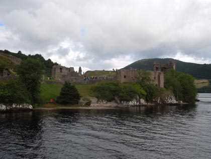 Our morning descent of the five locks at Fort Augustus was accompanied by sudden showers of heavy rain and sudden flashes of brilliant sunlight. However on arriving at the bottom, and mooring for a short while on the banks of Loch Ness, the sun shone determinedly and we enjoyed a short but pleasant exploration of this busy little hamlet. But next we cast off and set sail across Loch Ness itself, the largest body of fresh water in the United Kingdom. And, allegedly, with one famous resident.