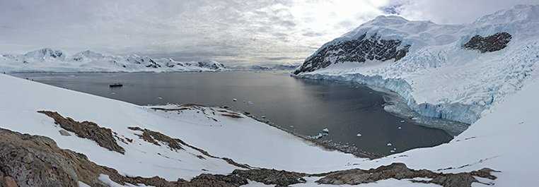 We relocated the ship to our next equally beautiful destination of Neko Harbor, which was surrounded by an incredible tidewater glacier and again more gentoo penguins waiting for the snow to melt to carry on with their seasonal nesting. The highlight of Neko Harbor was a hike to a glacier overlook that had the most stunning panoramic view of our seemingly small ship dwarfed by this immense glacier, which sporadically calved with a thundering sound. Two of our guests planned their wedding for this perfect day at this destination where Captain Skög read them their vows overlooking this exquisite scene. A timely calving of the glacier and an ensuing toast with champagne followed the nuptial kiss.