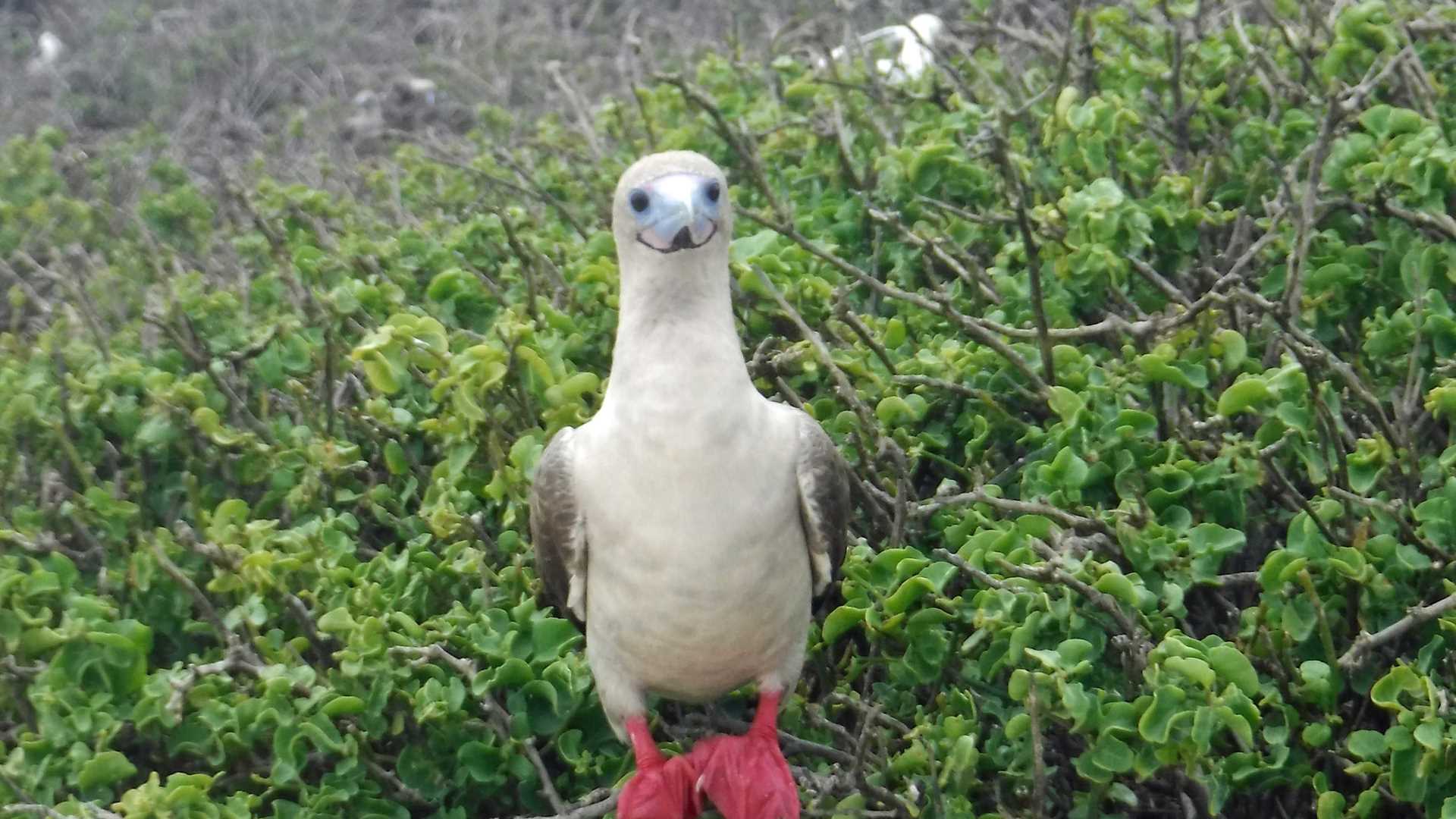 Early in the morning, we woke up in this eroded caldera full of bird action: red-footed boobies, Nazca boobies, frigate birds, red-billed tropicbirds, and storm petrels were flying around National Geographic Islander. Our first activity took us to Darwin’s Bay, where we walked on top of a young coral beach. Swallow-tailed gulls were the first birds nesting at the beach, and a large number of great frigate birds, Nazca boobies, and red-footed boobies were flying all around us, making the most wonderful symphony of birds calls that we could imagine.