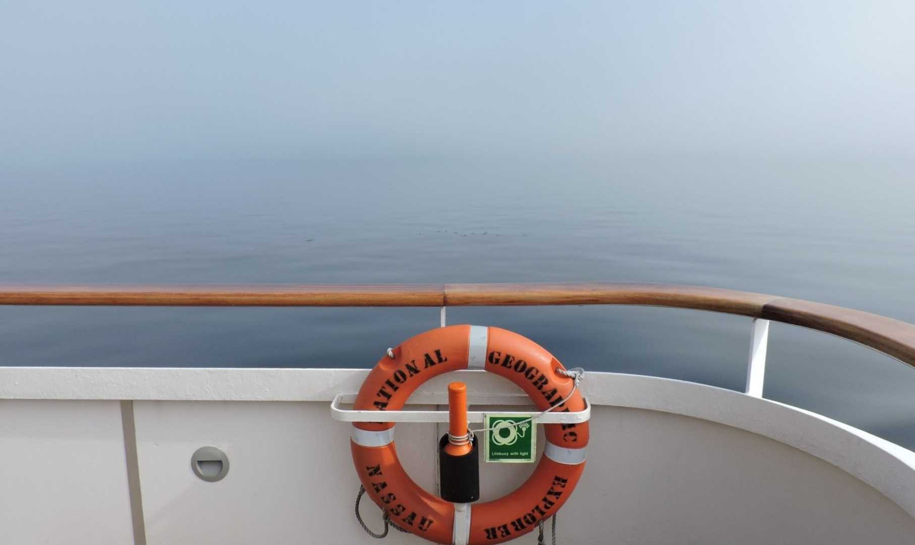 National Geographic Explorer spent a beautiful day at sea heading from Greenland towards Baffin Island. This took us across Davis Strait, named for John Davis who discovered this huge waterway while searching for a Northwest Passage route during three expeditions in the 1580s. Our morning in Davis Strait was like sailing in a millpond. Not a ripple could be seen, except for our very regular and symmetrical wake, which spread out behind the ship.