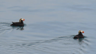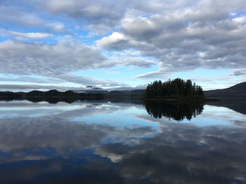 We woke up today in the peaceful waters of DeGroff Bay, with uncharacteristically beautiful weather, and even the typically-hidden volcano of Mount Edgecumbe was visible. The mirror-like waters beckoned us to explore, and so some of us got into kayaks while others explored the forests and the intertidal zone on foot; we all enjoyed the richness of the wilderness. We got acquainted with a pristine piece of the temperate rain forest by meeting the usual suspects: Sitka spruce and western hemlock forming a towering canopy. The undergrowth inspired us with various plants and flowers just starting to bloom in the early spring. And the low tide offered us marvelous opportunities to marvel at the resilience of the purple crabs, Pacific blue mussels, barnacles, and sea stars that dotted the bay’s tidal flats. The afternoon provided for great wildlife-viewing from the ship, as we spotted two bears walking ashore nearby. Although we stayed pretty quiet as we whispered in awe from the bow, the bears would often turn towards us before returning to eat grass; with a sense of smell 60 times better than ours, they surely knew we were close. These bears are eager for the annual return of salmon, which not only nourish not the big brown bears here, but also more than a hundred species of plants and animals and plants in this ecosystem. Tomorrow we will explore one of the most spectacular places to view wildlife in Southeast Alaska: the Inian Islands, in hopes of seeing Steller sea lions, humpback whales, and sea otters!
