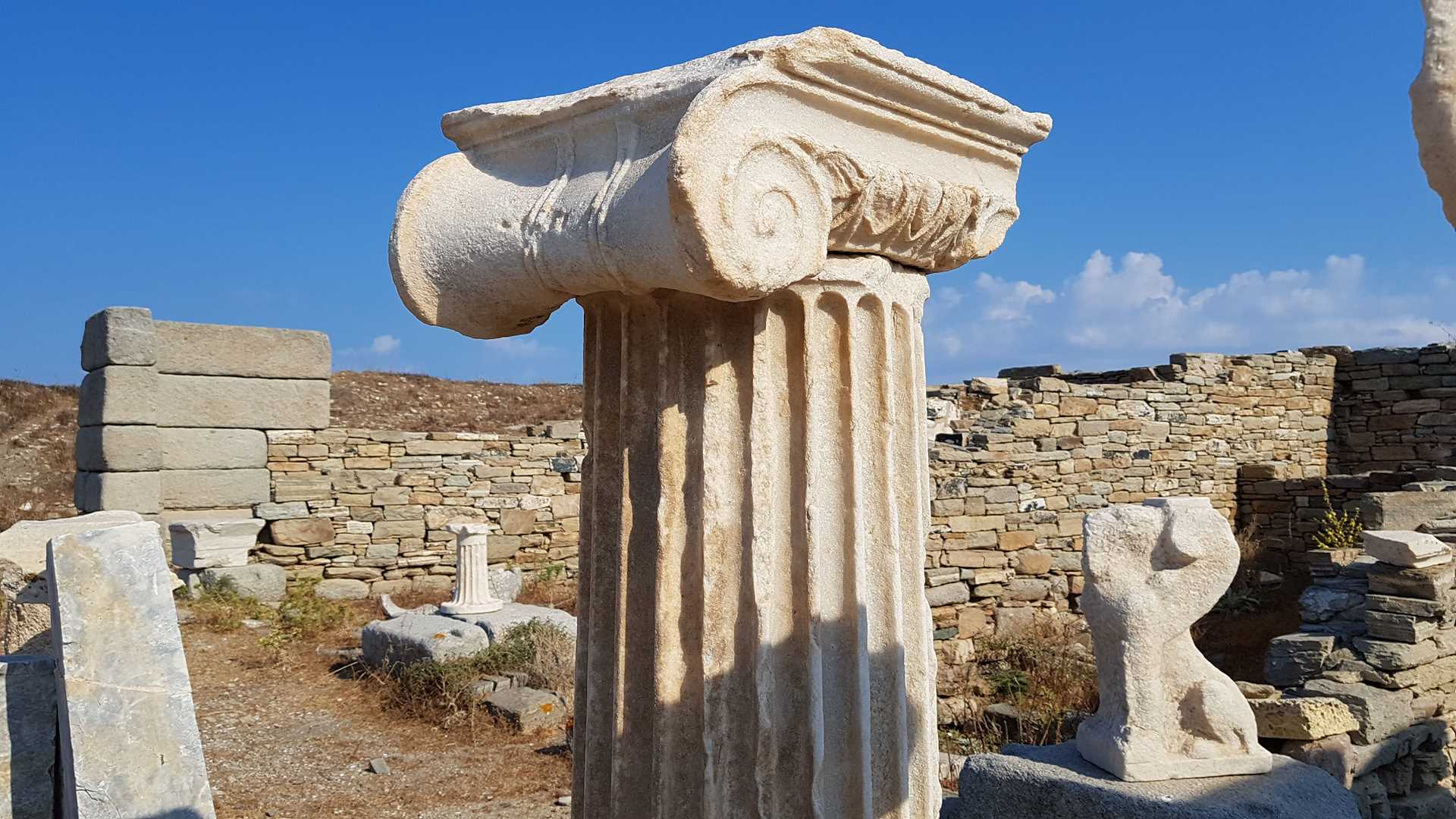 Delos is an uninhabited island today, but in antiquity it was the religious center of the Ionian Greek world. In the Hellenistic period, it became an international trading center; in Roman times, it was a free port. Its population reached 30,000, but it all ended violently when it was attacked by Mithridatis, king of Pontus. Walking through the ruins, we saw the cult center, temples, gathering halls, and the famous Terrace of the Lions, overlooking the Sacred Lake, where Leto gave birth to the twins under the sacred palm tree.