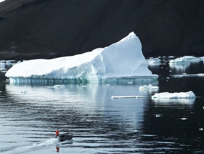A Zodiac was sent to investigate the possibility of a landing, only to find that any attempted landing would cause too much disturbance to the rookery, especially as the birds were sitting on eggs or young chicks.